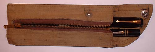 astly, my favorite pouch is this Military Pouch from WW2. It was clearly made by Conway Stewart for the army. Who was "Kempson NX 54614 A.A.O.G."? Who knows where its been and what stories it has to tell? The pen is a No. 477 which is an unusual number, and it came from Australia. You might like to read "A Conway in Action" by John Haynes (Journal of the WES no. 58 Summer 2000) A moving story about his father and his CS 226 during WW2.