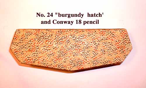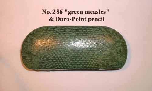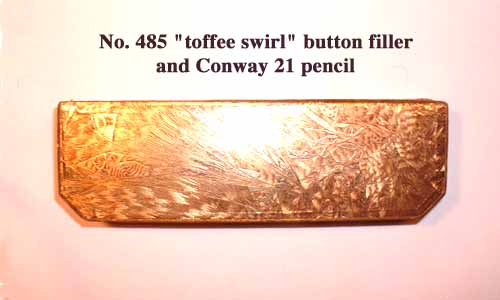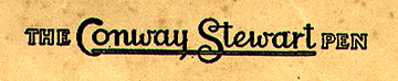 he Conway Stewart presentation boxes on this page date from the 1920's and 30's. They were beautifully made in a wide range of designs and colors, though some have suffered the wear and tear of time. At least some are of French manufacture. Boxes were numbered with a catalogue number and prices were as cheap as 5 shillings for a No. 33 set that contained a Scribe pen (No.336) and a "Nippy" pencil. Unfortunately the actual numbers were rarely printed on the boxes so it needs guess-work to allocate the catalogue numbers to their respective boxes. Each box contains a pen and pencil, while earlier ones also sometimes contained a Sheffield made pen-knife. Later boxes from the 40s and 50s are slightly less pretentious. You can open any of these boxes!