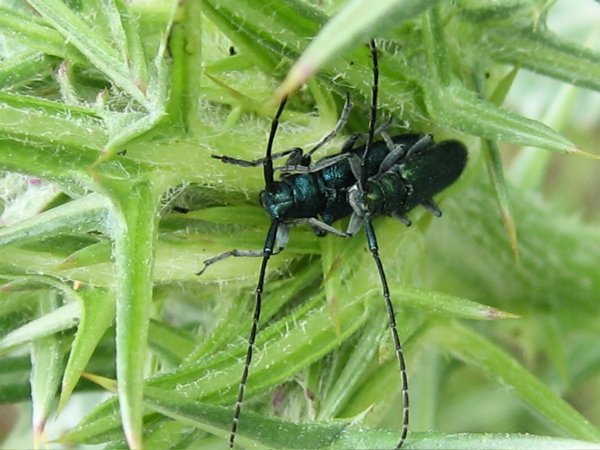 This could be either Agapanthia lias or A. violacea. From their pictures they look very similar. I photographed them on the "Derech Burma" near Bet Shemesh on 15.4.2006.