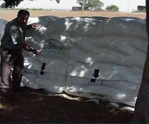 Together with our cooperating partners we have undertaken and are continuing to undertake both laboratory studies and a number of commercial size storage trials both in Israel (Bet Dagan and Holon), the US (Boston) and the Ivory Coast (Abidjan). Already, these have convincingly shown that through development of an effective evacuating system, very low pressures can be obtained and maintained within the standard GrainPro Cocoons for indefinite periods of time. This technology has been patent-applied-for, and although much has still to be done to apply and characterize the process for the large number of commodities to which it may be applicable, we are confident that a wide field of applications both for insect control and quality maintenance lies before us.