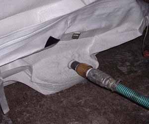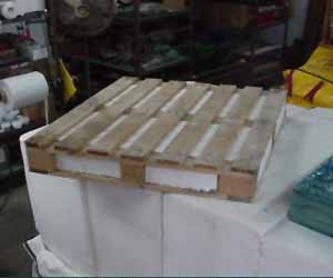 The first two pictures (below) show the quick connection in these trials and pallets filled with polystyrene blocks used to prevent collapse of the pallets under vacuum.