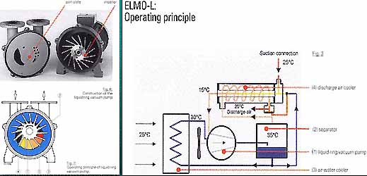 The next two pictures (below) show the liquid ring/water pump and a diagram of the operating principle.